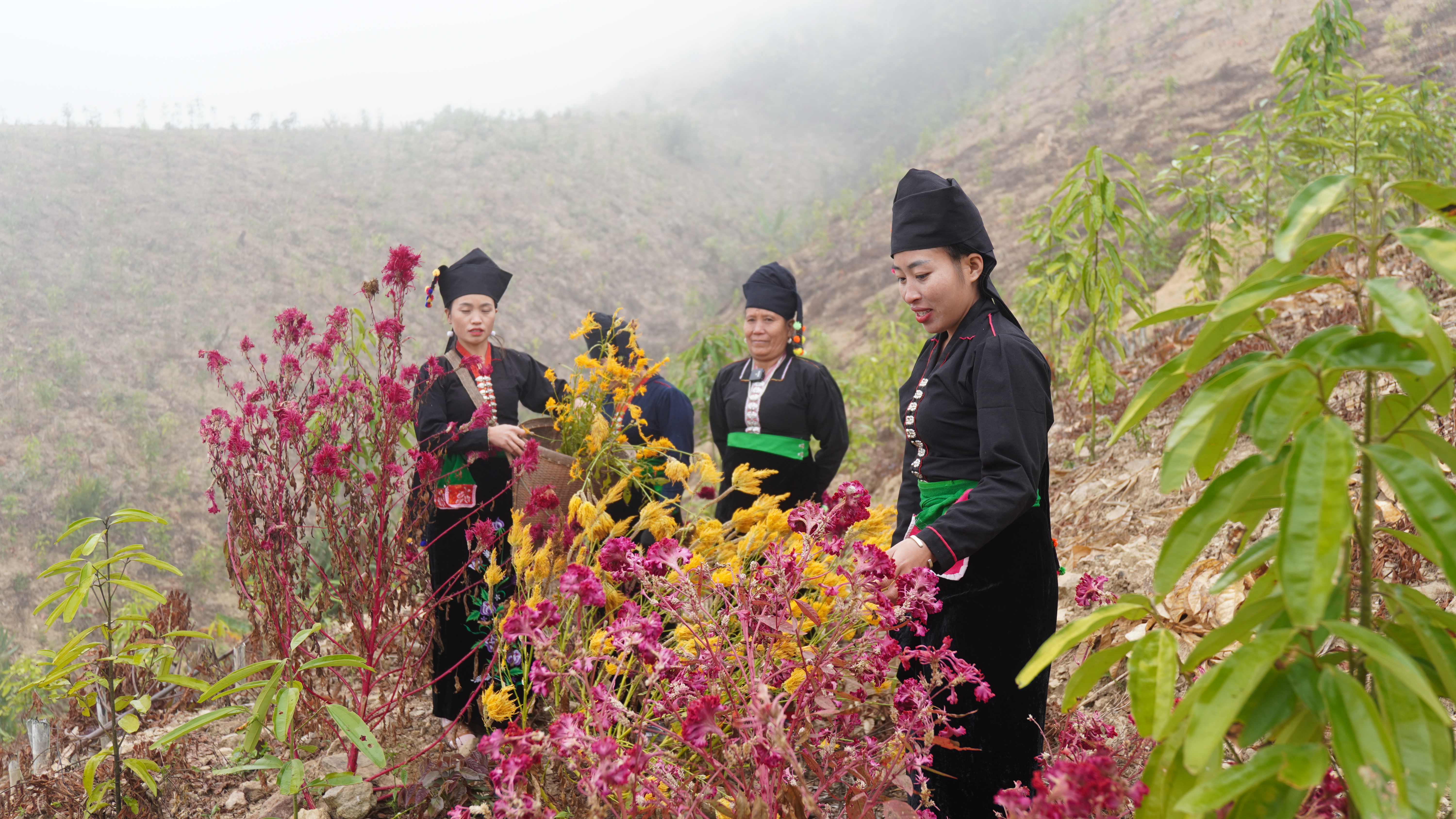 Chuẩn bị cho lễ hội dân bản lên nương lấy hoa mào gà về để cúng