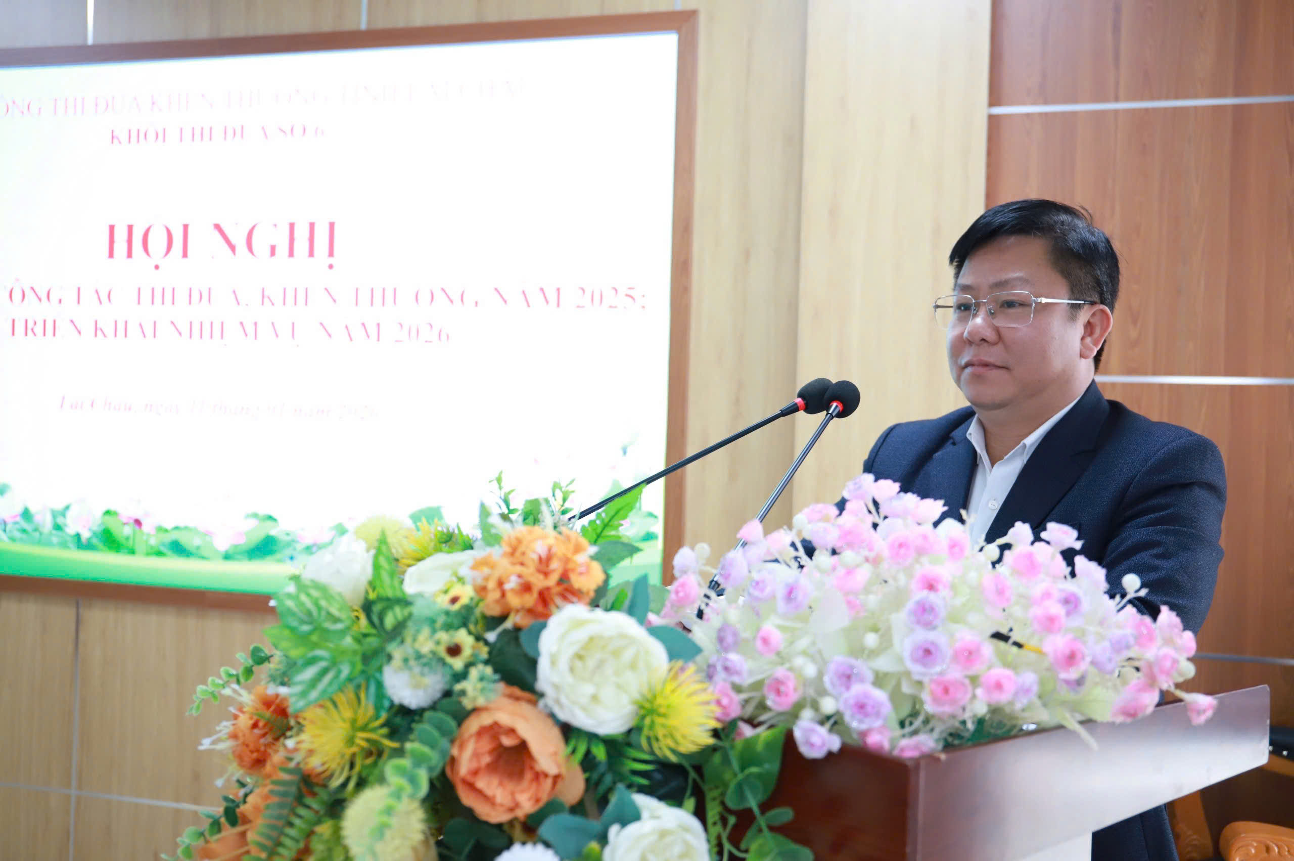 Trong năm qua, các cơ quan, đơn vị trong Khối thi đua số 6 đã tích cực triển khai các phong trào thi đua yêu nước, gắn với nhiệm vụ chính trị, chuyên môn, góp phần hoàn thành tốt nhiệm vụ được giao. Đồng thời đề nghị các đại biểu tập trung thảo luận, đánh giá kết quả đạt được, đề xuất giải pháp nâng cao chất lượng công tác thi đua, khen thưởng năm 2026.