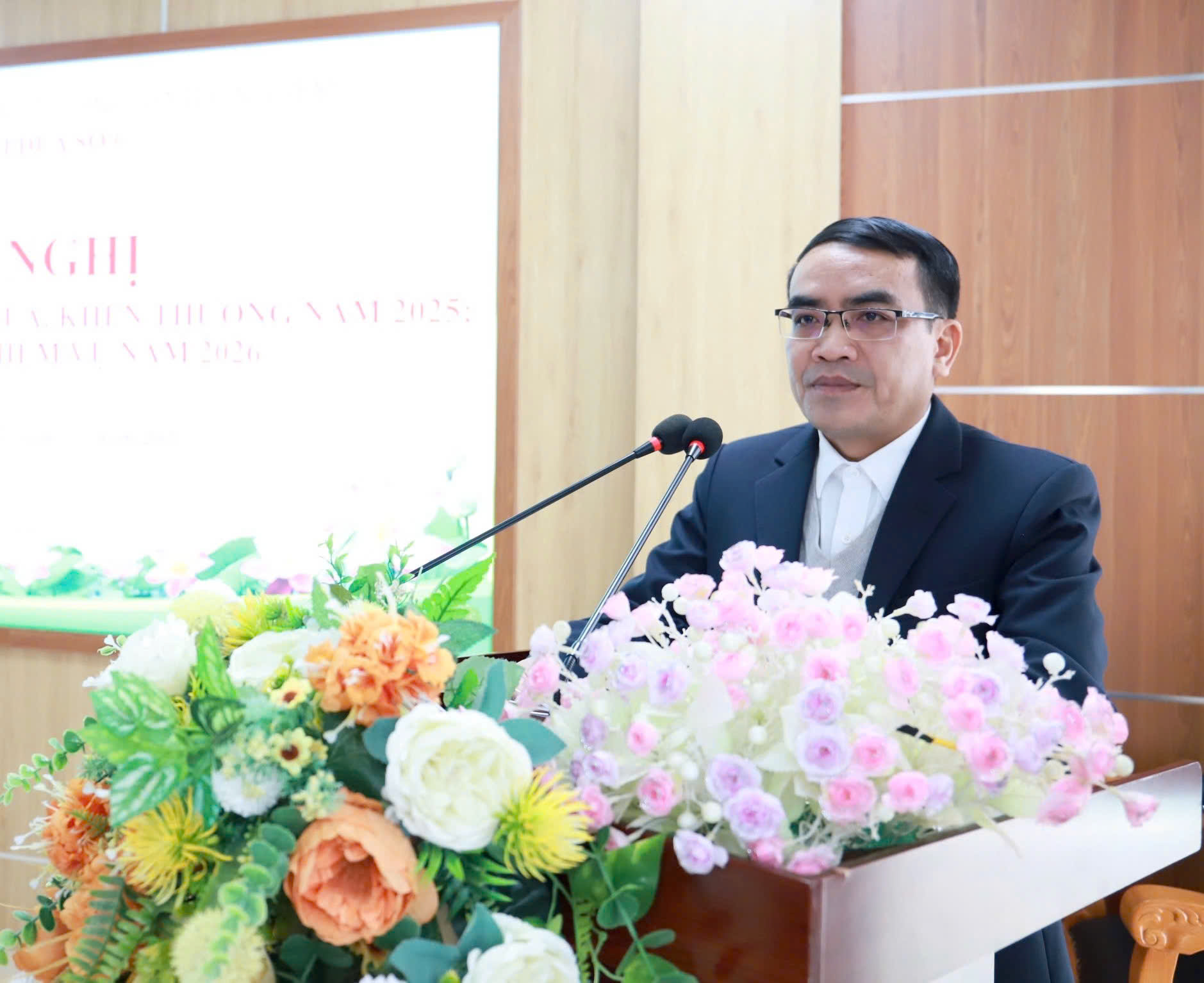 Đồng chí Lưu Hồng Phương – Phó Giám đốc Sở Văn hóa, Thể thao và Du lịch trình bày Báo cáo tổng kết công tác thi đua, khen thưởng năm 2025; phương hướng, nhiệm vụ năm 2026 của Khối Thi đua số 6.