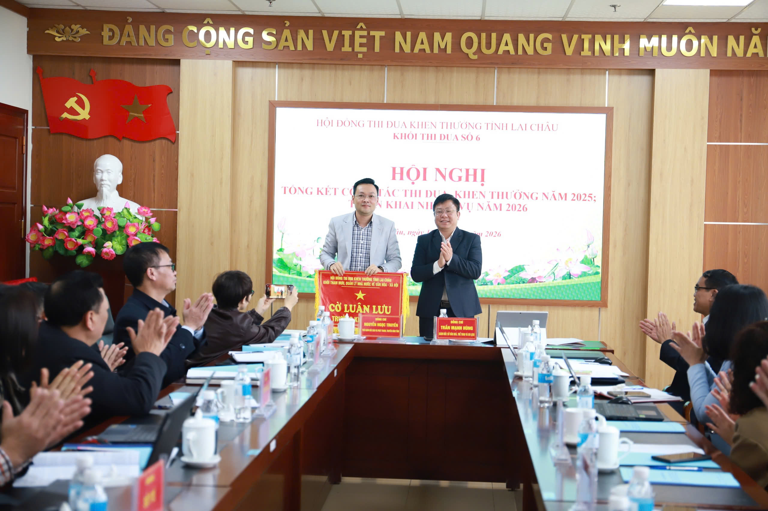 Lãnh đạo Sở Văn hóa, Thể thao và Du lịch trao Cờ luân lưu cho lãnh đạo Báo và Phát thanh, Truyền hình Lai Châu – đơn vị Trưởng Khối thi đua số 6 năm 2026.