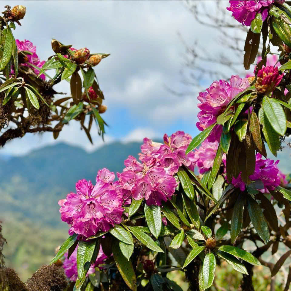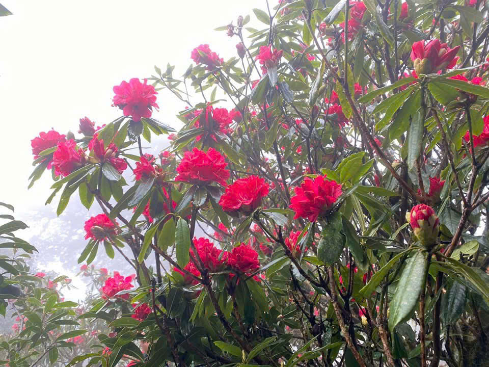 Những triền núi phủ sắc hoa đỗ quyên rực rỡ trên dãy Tả Liên Sơn vào mùa xuân tạo nên điểm nhấn đặc biệt trên hành trình chinh phục đỉnh núi.